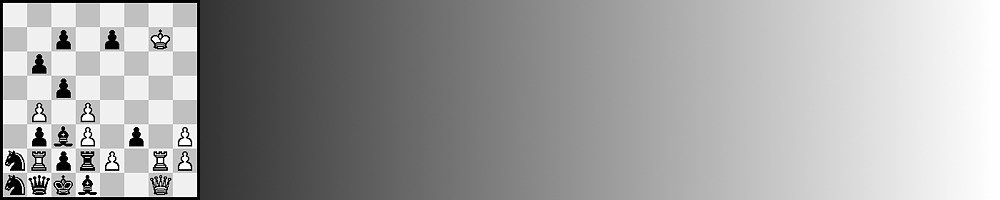 1.Sc3 g5 2.Sd5 g4 3.Sxe7 g3 4.Sg6 Lc5 5.Sf3 d6 6.Tg1! Lh3 7.gxh3 Se7 8.Lg2 Tg8 9.Lh1! g2 10.Tf1! g1=D 11.Sh8 Dg3 12.Lg2 Sg6 13.Th1! Df6 14.Sg1 Da3 15.Lf1! Dfc3 16.bxc3 Ke7.