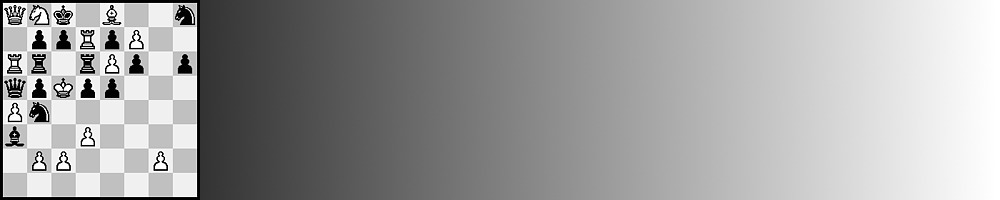 Zur Erinnerung: Beim Schach-960 wird die Partieanfangsstellung der Offiziere ausgelost, dabei stehen die Läufer auf unterschiedlich farbigen Feldern und der König irgendwo zwischen den Türmen; die schwarzen Offiziere werden symmetrisch zu den weißen aufgebaut (z.B. wKf1, dann auch sKf8).